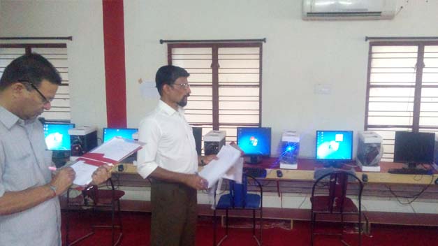 A spacious Lab of 131.91 Sq.ft is provided with a seating capacity of students at a time for class room teaching as well for practicals. The lab equipped with 21 systems. Its supports all kinds of multi media each system is provided with head sets and mike. There is 8GB USB (Pen Drive) for data transfer and one card reader. There is 400 MBPS external hard disk for storing video recordings which is mandatory for all the Macro & Micro teachings and projects of the students. It also have an Educational Technology lab which include TV, DVD Plavyer, Video Camera, etc.